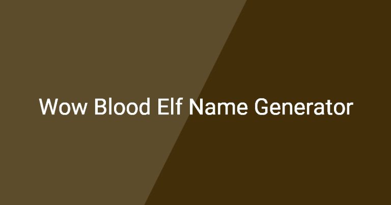 Wow Blood Elf Name Generator
