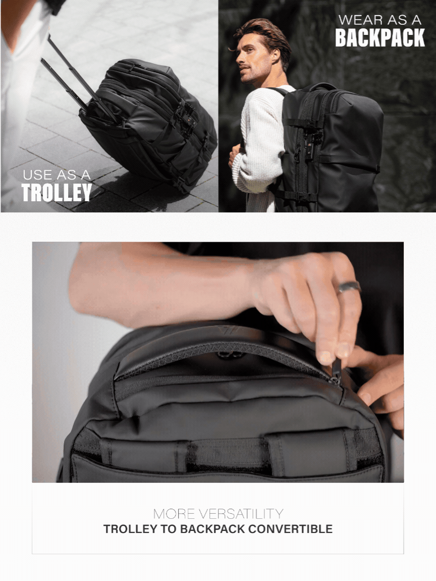 Freedom to switch between suitcase and backpack at any time.